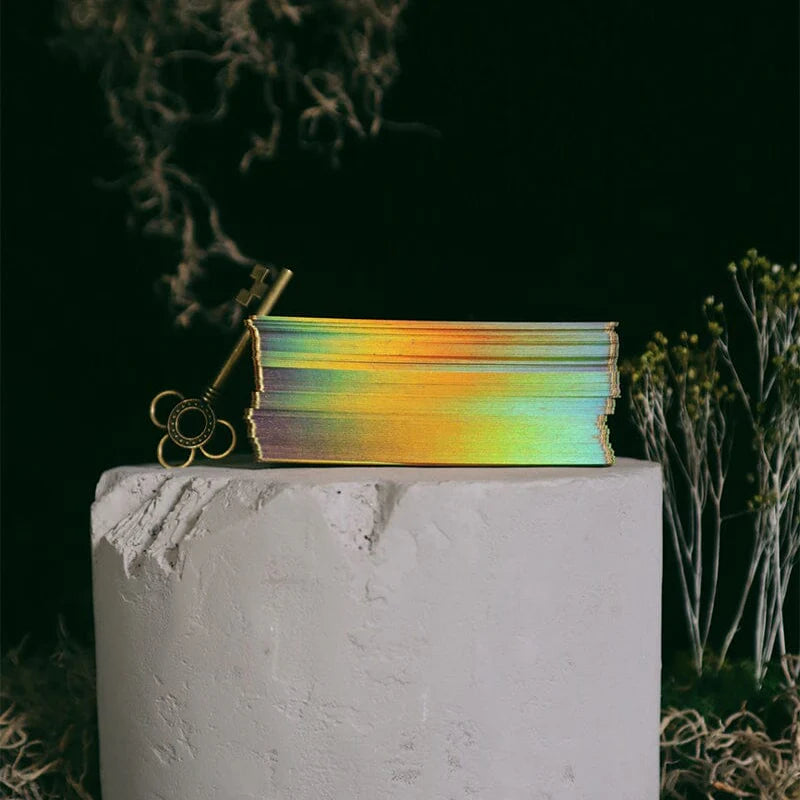 Haciéndose eco de la narrativa panorámica que se encuentra en otras barajas del universo Visions, los arcanos mayores del Tarot Green Glyphs tejen un tapiz de historias, lo que permite interpretaciones fluidas y narrativas visualmente coherentes.