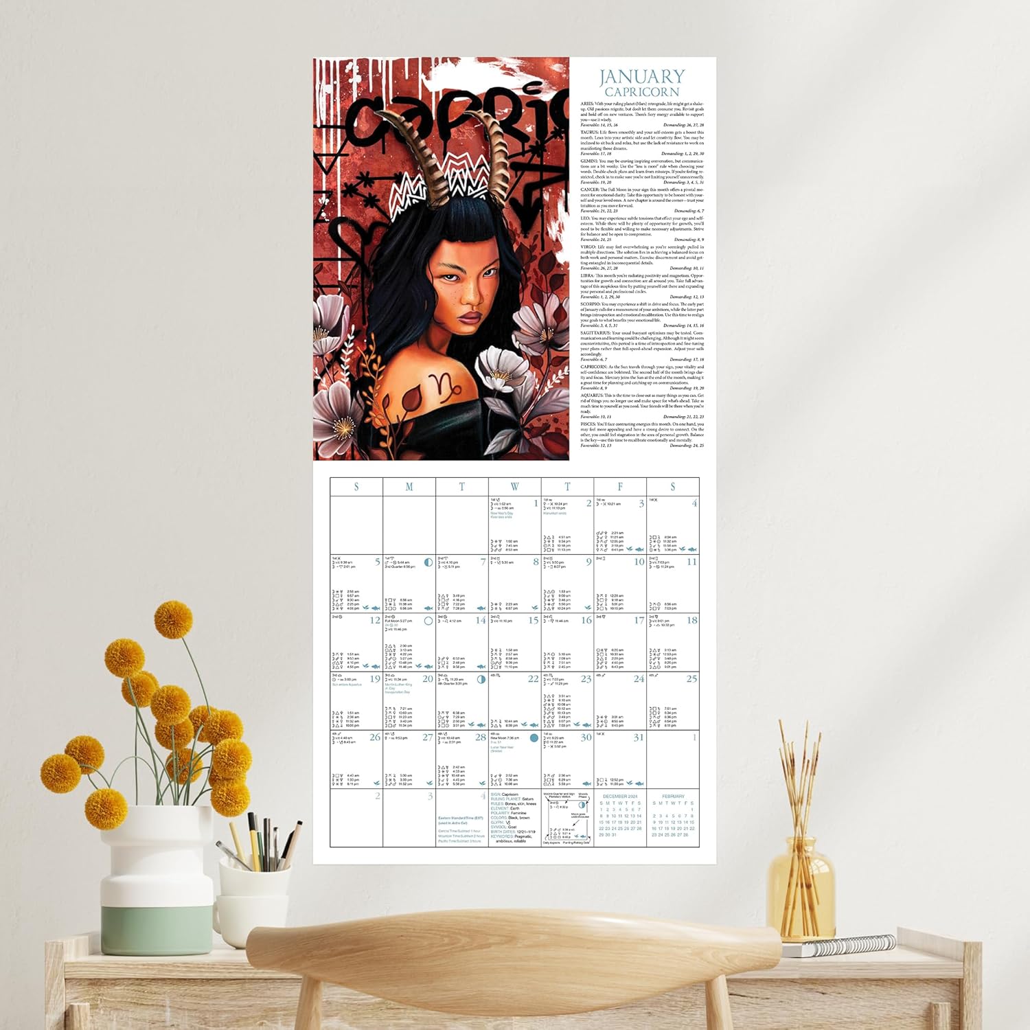 Este calendario, uno de los favoritos desde hace mucho tiempo entre astrólogos de todos los niveles, le deleitará con las magníficas ilustraciones de Yana Badamshin, horóscopos mensuales, previsiones de viajes, dieciséis páginas adicionales con material astrológico y mucho más. La edición de este año también incluye una ilustración y una tabla de movimientos planetarios, una tabla de las lunas nuevas y llenas del año y tablas retrógradas.