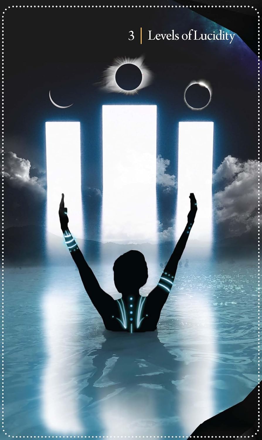 Las impresionantes cartas simbólicas se componen de dos mensajes, integrando las instrucciones para el estado de vigilia y el estado de ensueño. Meditar en estas perspicaces cartas fortalecerá tus habilidades para soñar lúcidamente y te ofrecerá orientación para moverte a través de la realidad de vigilia más conectado a tu profunda intuición.